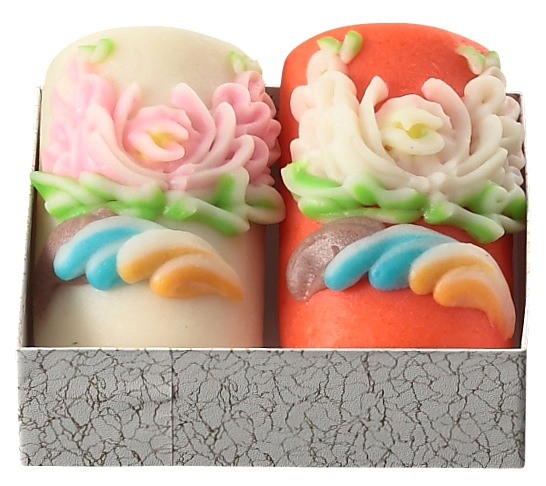 - 紅白の箱入セット。ご結婚、ご結納など、お祝いの席に華を添える逸品です。